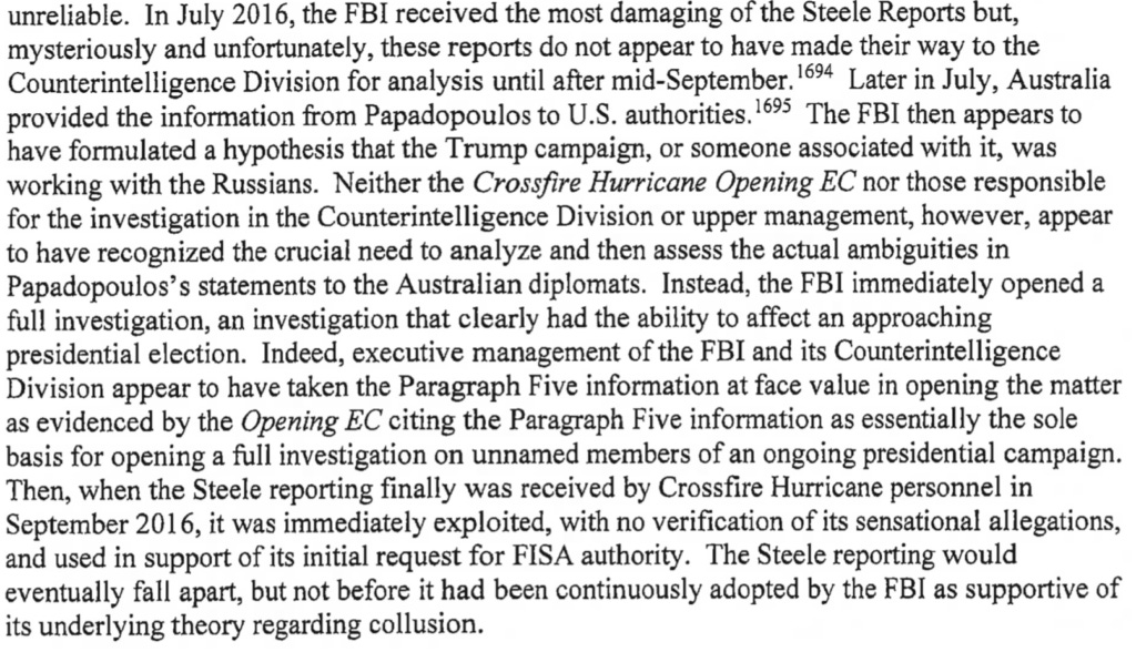 “Based on the review of Crossfire Hurricane and related intelligence activities, we conclude that the Department and FBI failed to uphold their …